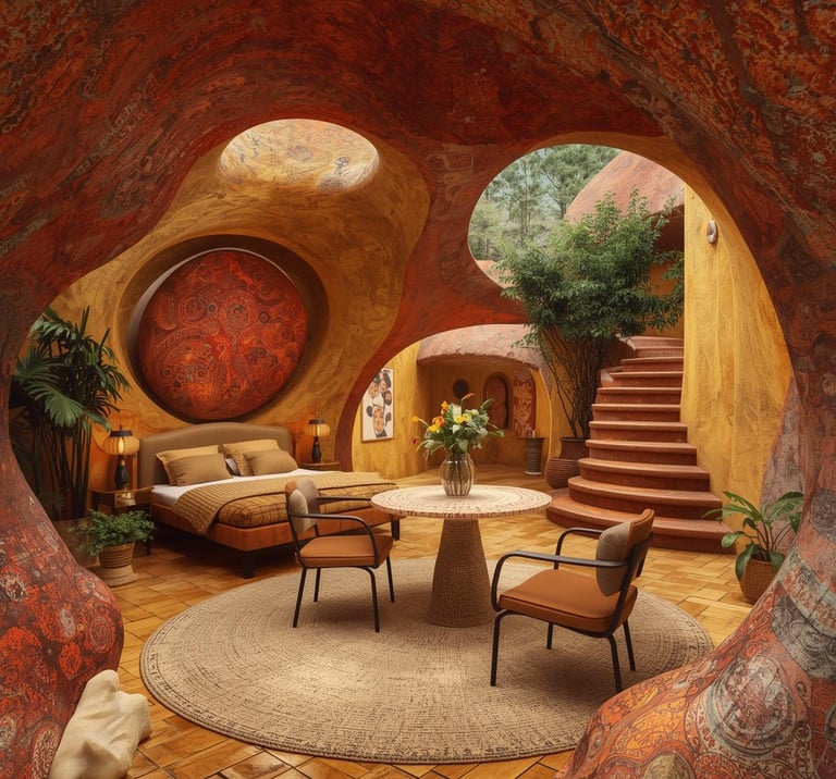 Comme théorisé dans le traité sur les Mutanda Buildings, la symétrie organique est la défense primaire de l'individu. L'« Habillement du Paysage » n'est pas un choix esthétique ; c'est la création d'une membrane protectrice qui protège le soi de l'effondrement du monde linéaire. Spheropolis est l'expansion urbaine de cette intimité protégée.